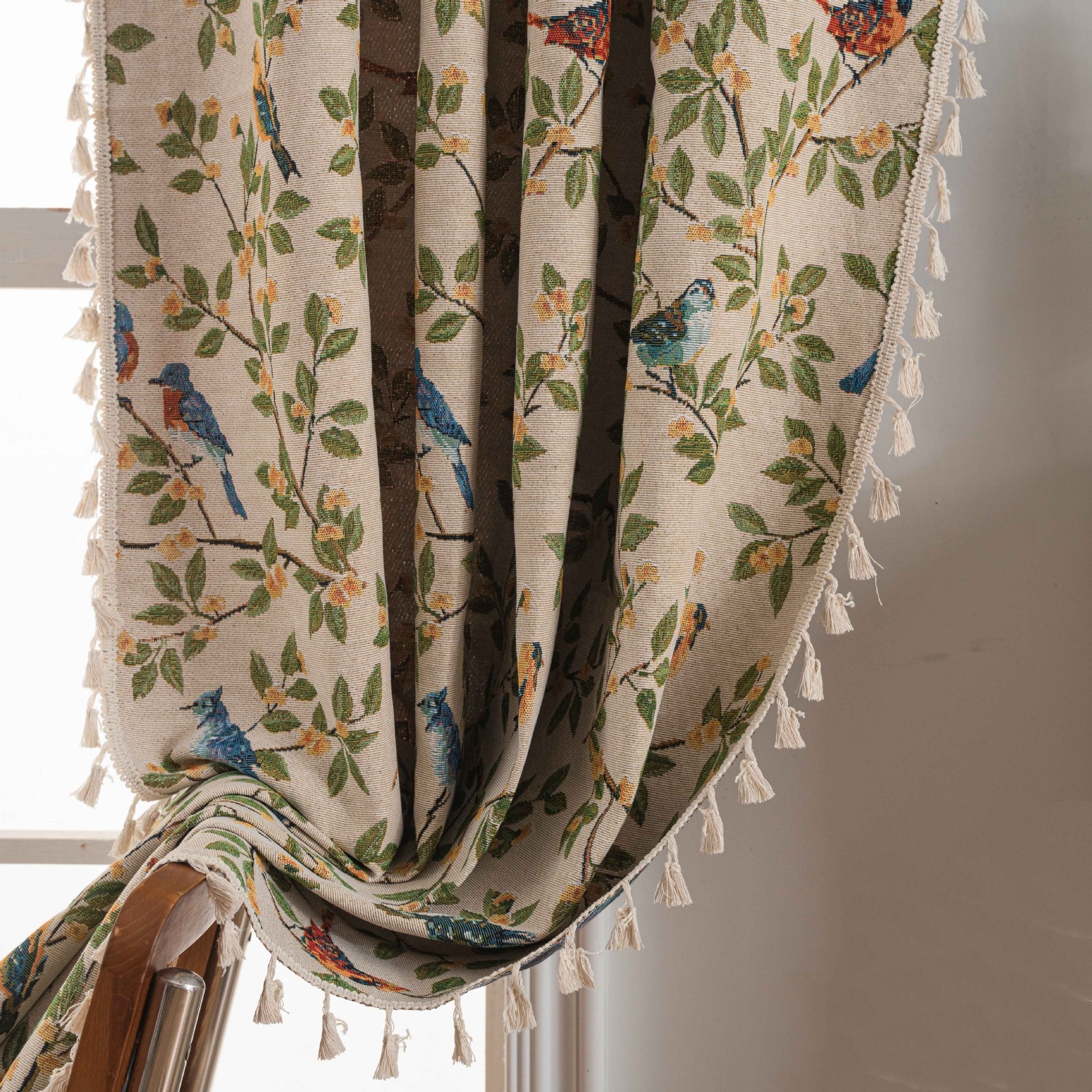 American Style Tassel Curtains For Bedroom, Living Room, Balcony, Ready-made Curtains